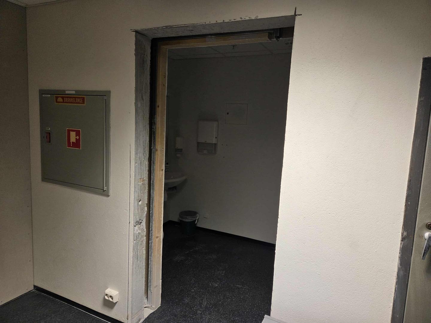 Av fleire spennande ting som har skjedd desse vekene kan vi nemne at dørene inn mot nytt toalett er teke vekk. Ny vegg er komen opp inn til lager. Det er mursaga ny dør til toalettet og oppussing av golvet er så vidt igang. Det som skal bli barnerommet er også måla i fine fargar