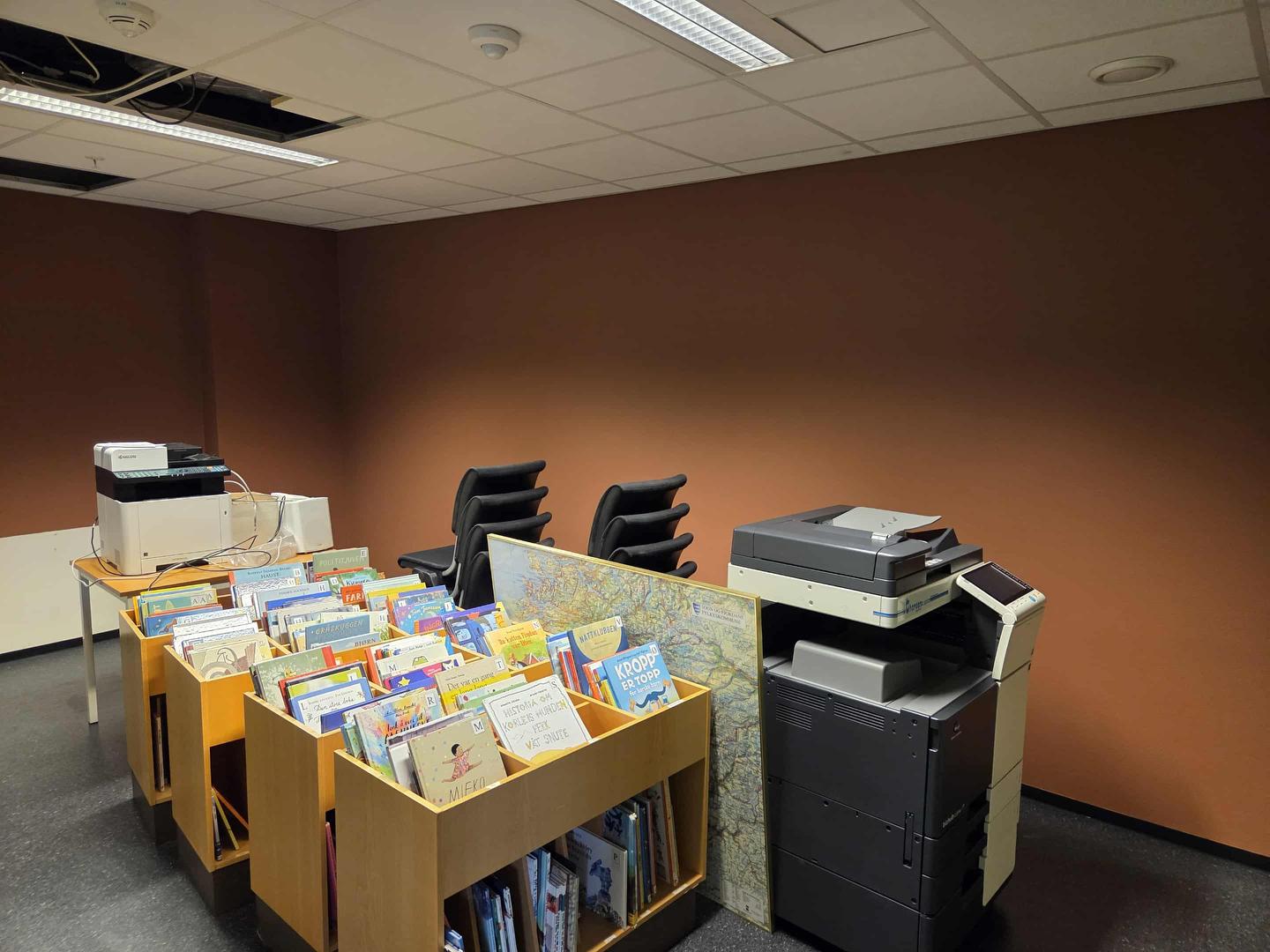 Vi er komne til veke 44. Dei to siste vekene har det skjedd utrulig mykje i biblioteklokala i Sophus Lie vegen 3. Mange bøker er kassert, hyllene er flytta saman på fremste delen av lokala. Denne veka er biblioteket stengt tysdag 28/10 og held elles ope til vanlege tider. Mange veggar har allereie skifta farge. Aktivitetsrommet til Eid Frivilligsentral og den nye lesesalen var dei to første romma som vart måla ferdig.Tysdag 21. oktober (veke 43) var 28 Sterk og stødig trimmarar + 3 instruktørar oppe i aktivitetslokala og testa ut korleis det vil vere å ha trim der. Dette var kjempenyttig slik at vi kan sjå kva som må justerast på og ordnast for at dei viktige trimgruppene våre skal få gode vilkår også etter flyttinga frå Eidsgata 9.