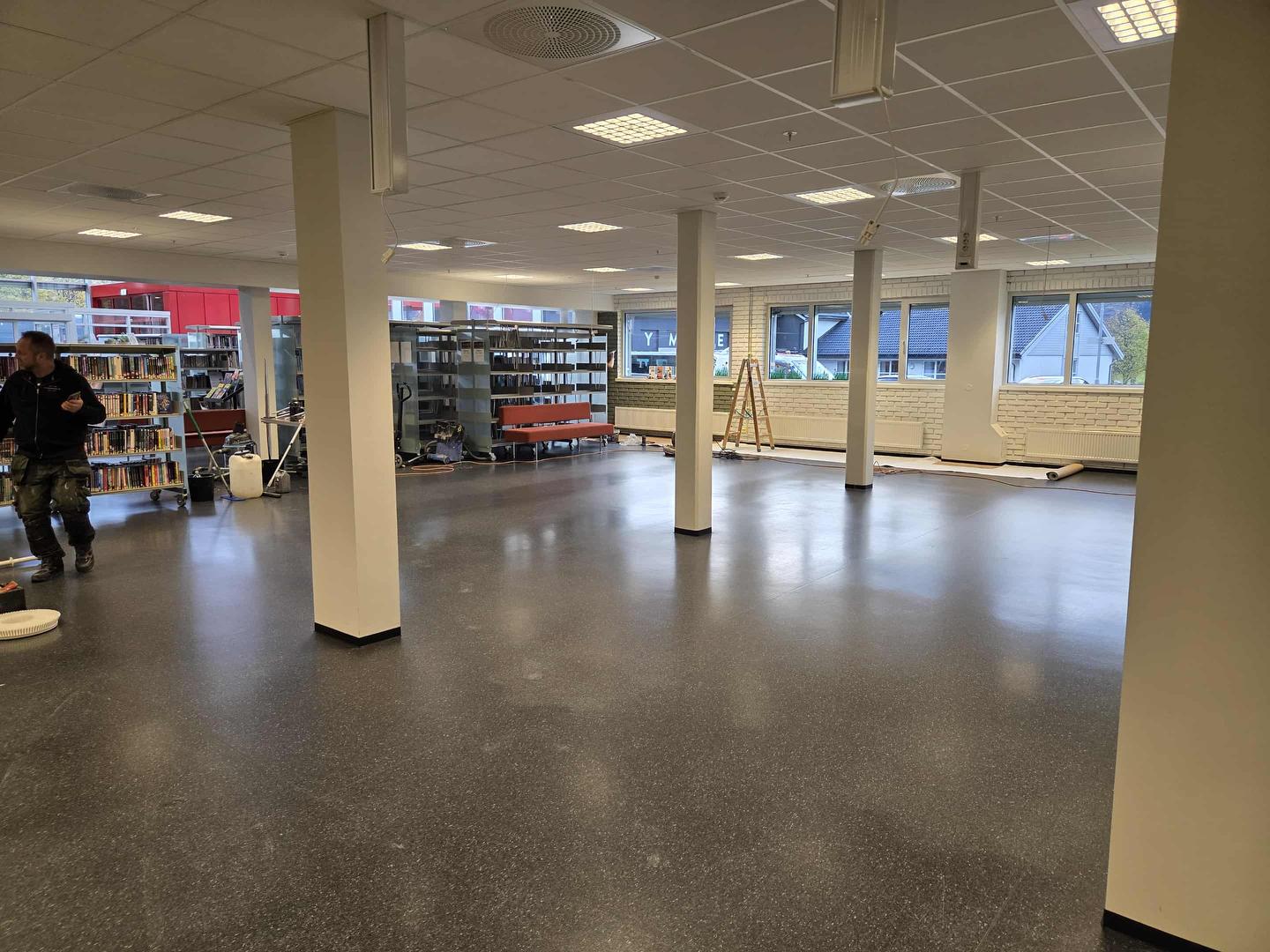 No i veke 44 får veggane i bakerste delen av lokala nye fargar og golvet i same delen vert pussa opp slik at dei kan tåle hard bruk i minst 10 år til. I veke 45 skal det same gjerast i fremste delen av lokala. Då vert biblioteket heilt stengt frå laurdag 1. november til onsdag 12. november.